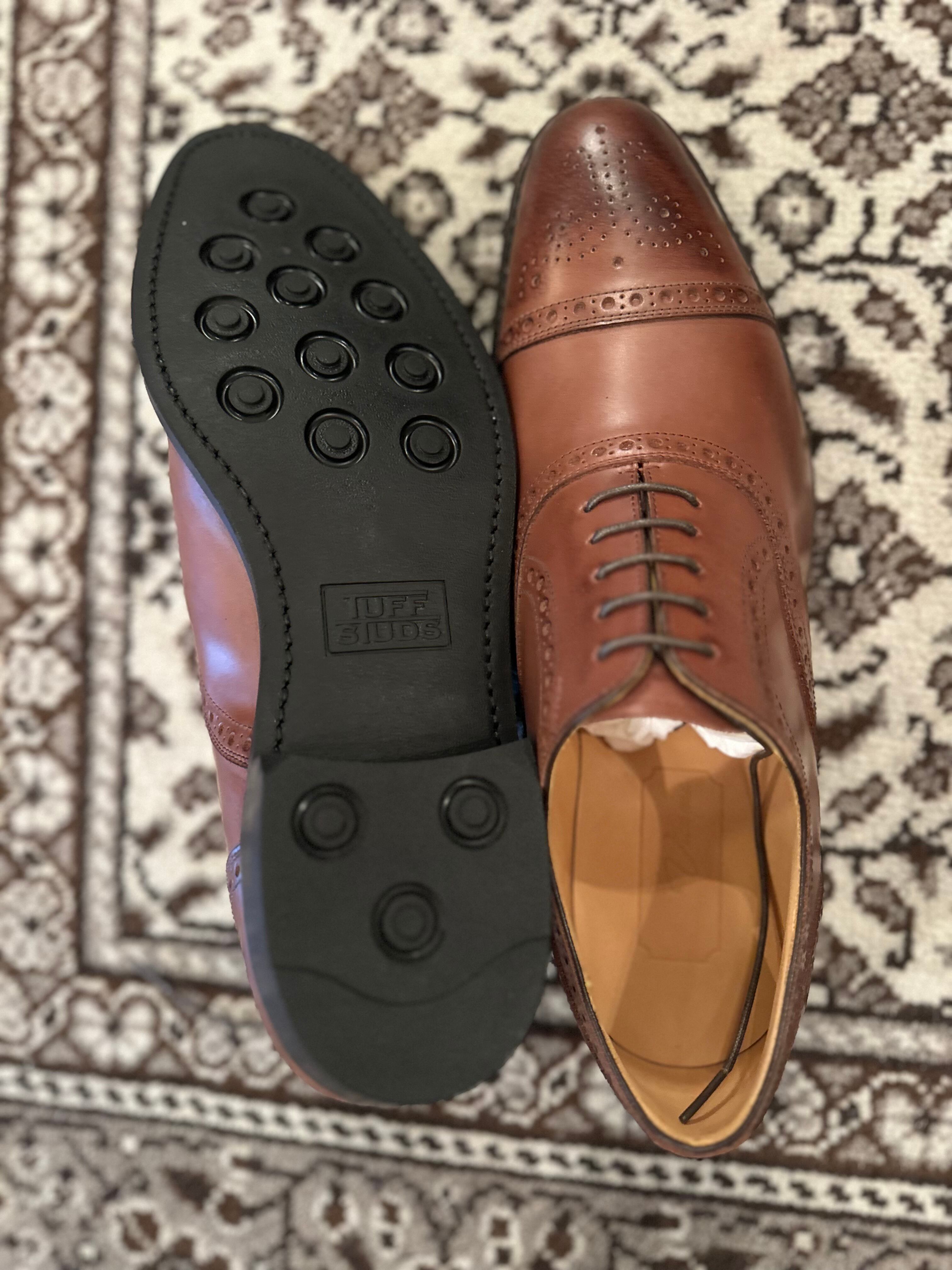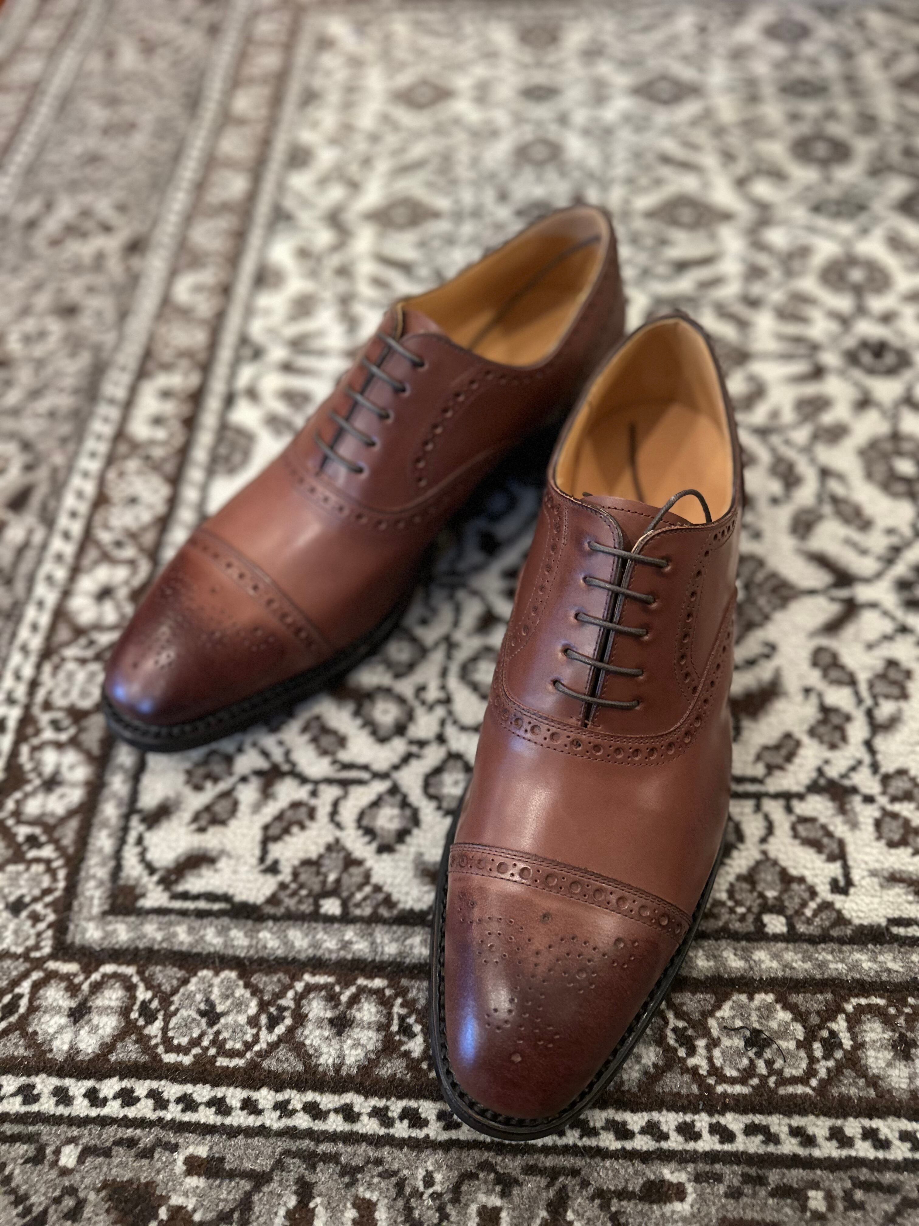 英国調のクラシカルラストで製作したセミブローグキャップトウのドレスシューズです。