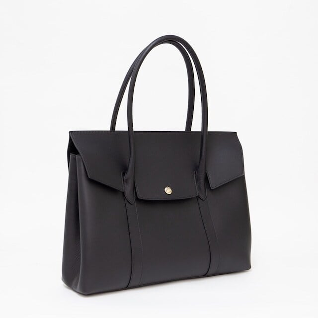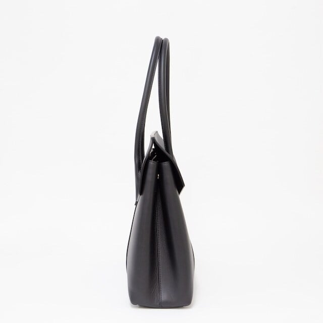 オン・オフ問わず使用でき、程よいサイズ感で仕上がっているフラップ型のトートバッグは高級感のある大人らしい印象を演出します。