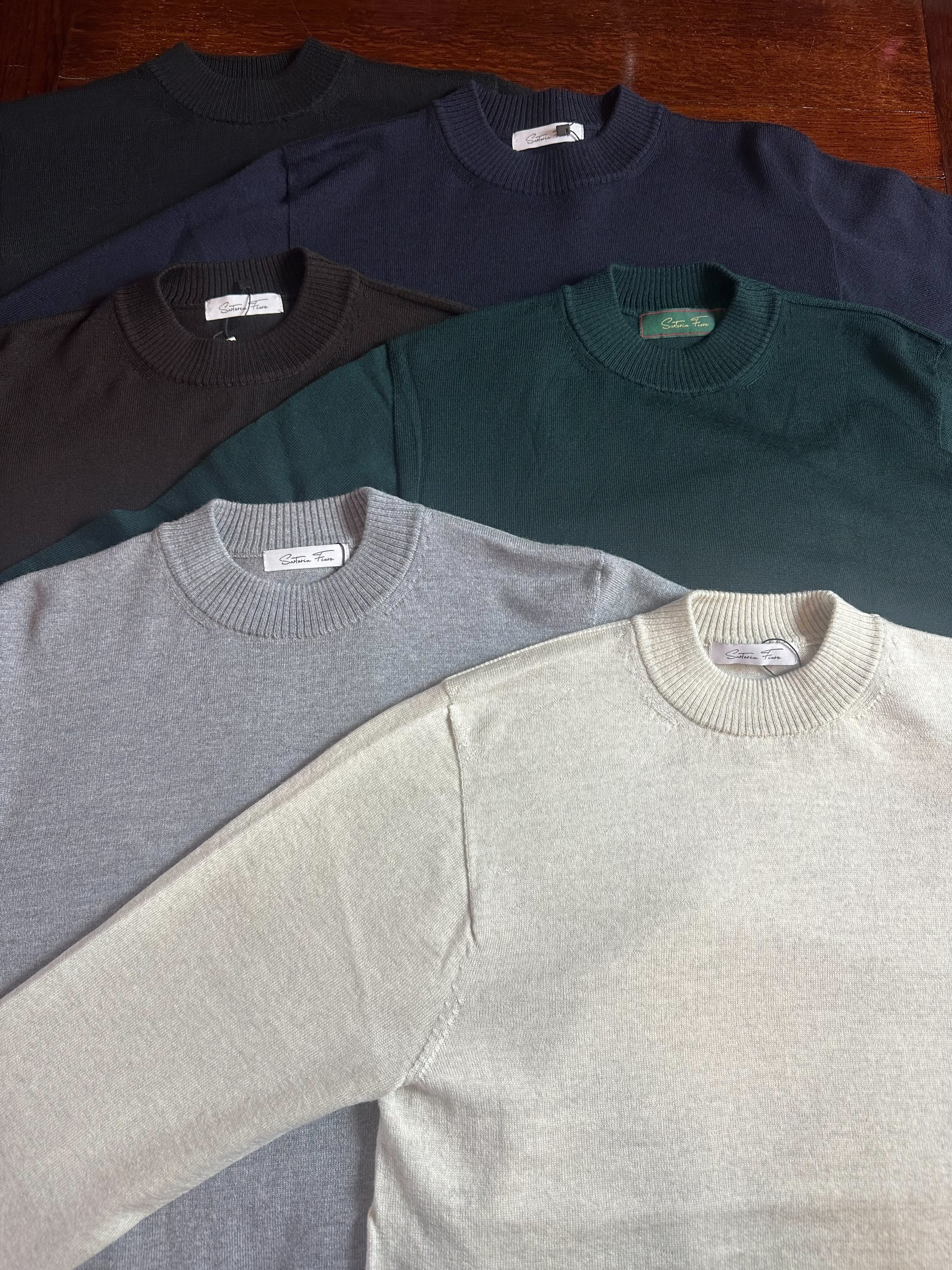 クルーネックでもなく、モックネックでもない絶妙な高さの首元が特徴のシリーズ。