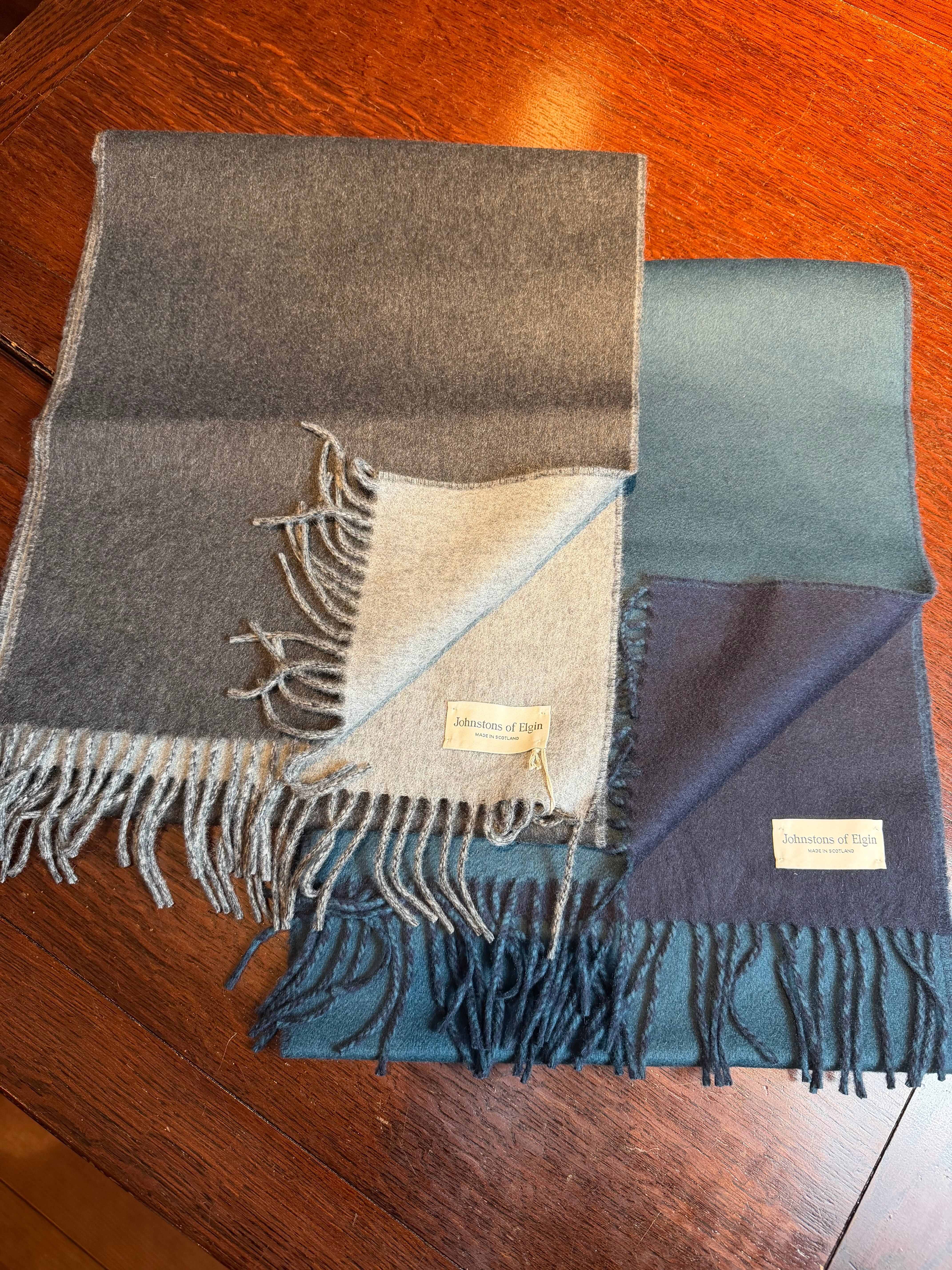 この多用途なスカーフは、対照的な色合いにより2つの異なるスタイルを1つに融合させたデザインが特徴です。当社の顧客から人気の高いカシミアスカーフは、天然のテーズルを使用することで実現した特徴的な波紋状の表面が特徴です。